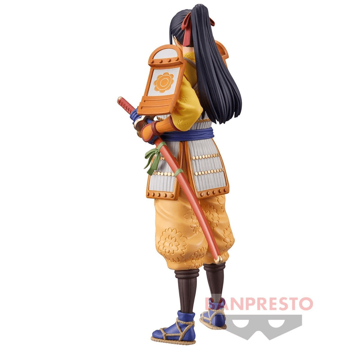 This One Piece Kikunojo statue, part of Banpresto 's Extra The Grandline collection, is ideal for any collector and otaku fan of Eiichiro Oda 's manga and anime . With carefully crafted details in her traditional attire, a pose that radiates serenity and confidence, and an expression that reflects her unbreakable spirit, this figure perfectly captures the nobility and prowess of Wano's most elegant samurai. Its high-quality finish and design faithful to the original work make this piece an excellent addition to any One Piece display case. Add it to your collection and relive Kikunojo 's strength and grace on your shelves!