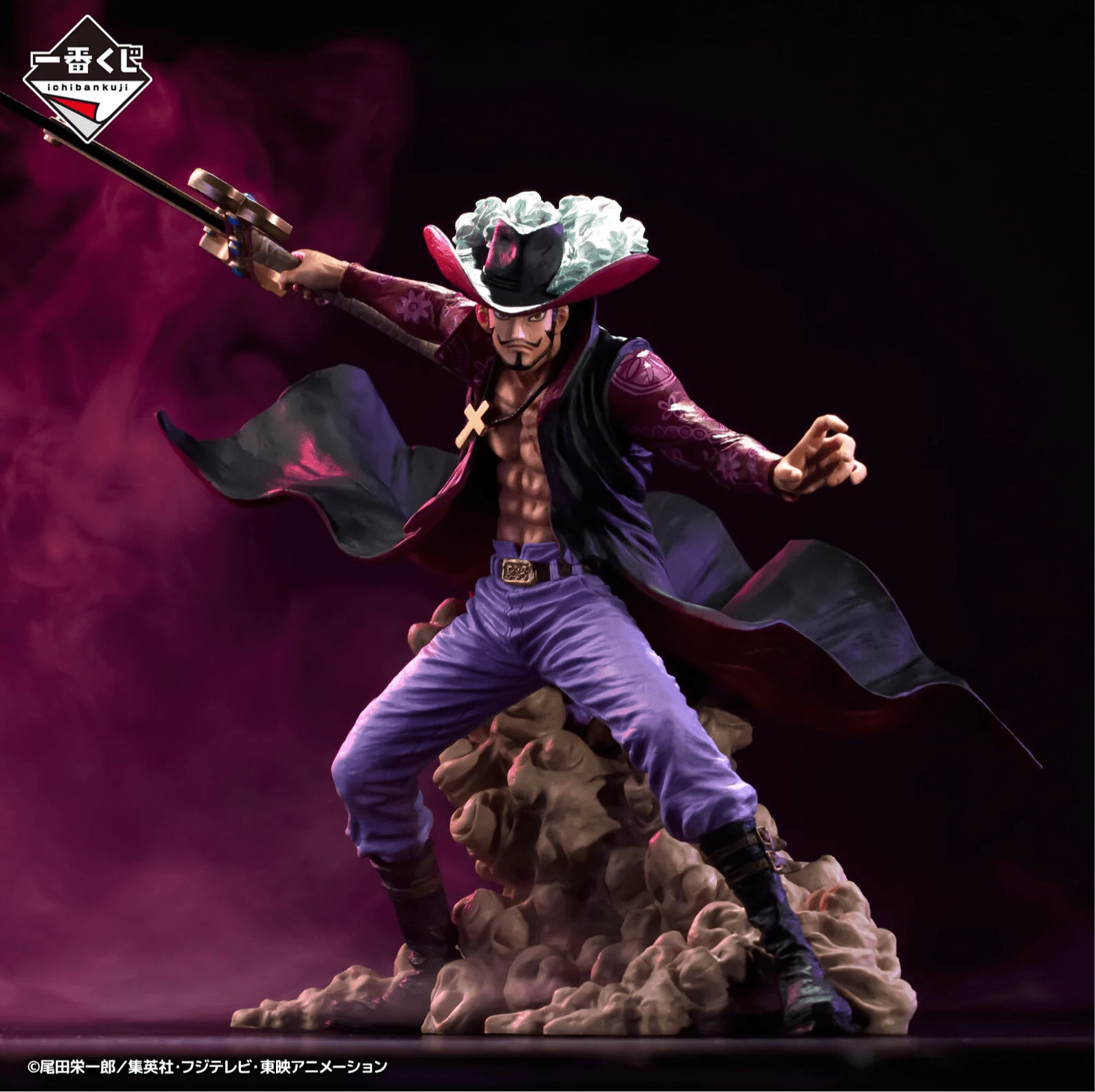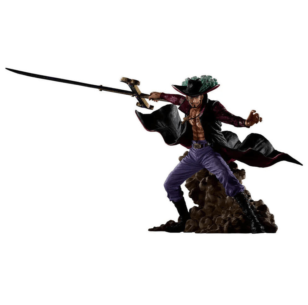 Majestic figure of Dracule Mihawk , the world's greatest swordsman, from the Japanese Ichiban Kuji drawing, as Prize C of the EX Shikon no Keifu collection. This high-end piece captures Mihawk in an imposing pose, wielding his sword. Essential for One Piece collectors looking for highly detailed figures.