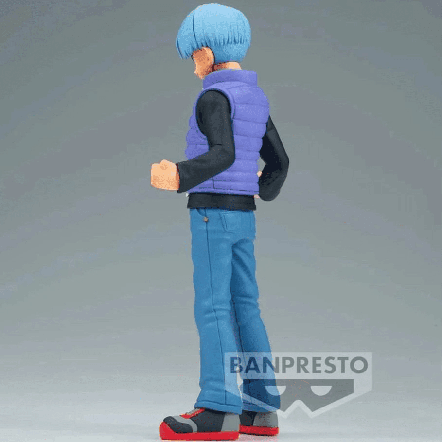 This spectacular Trunks figure from Dragon Ball Super: Super Hero , belonging to the Banpresto DXF collection , is an essential piece for any collector and otaku passionate about Akira Toriyama 's manga and anime . With a meticulous design that highlights his outfit from the film, a dynamic pose that reflects his determination and a confident expression that captures his bravery, this sculpture perfectly represents the son of Vegeta and Bulma . Its high-quality finish and fidelity to the original work make this figure a gem for any Dragon Ball Super display case. Get it and add Trunks to your collection with his unmistakable style!