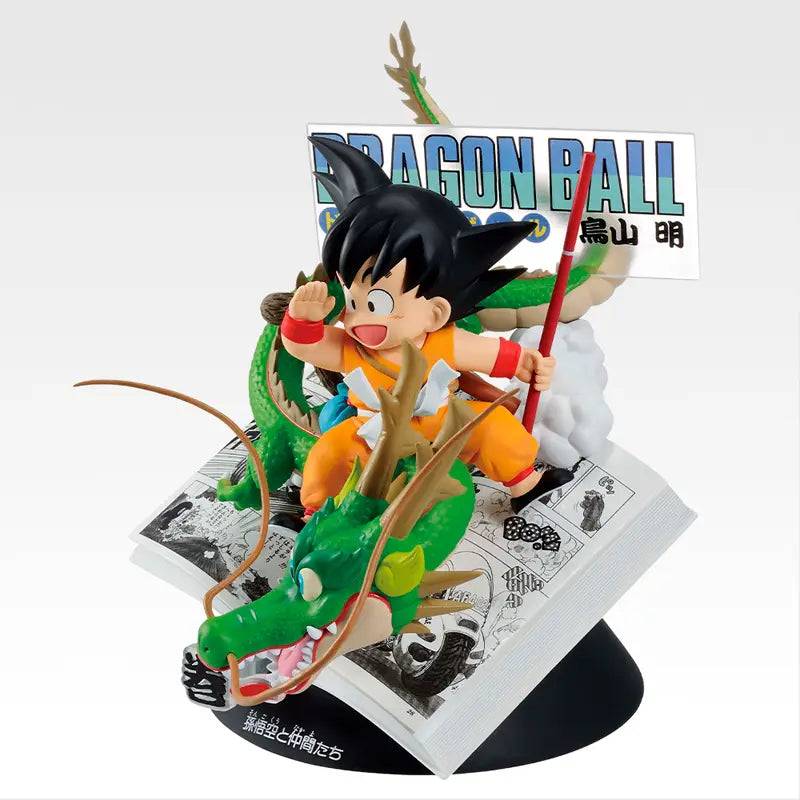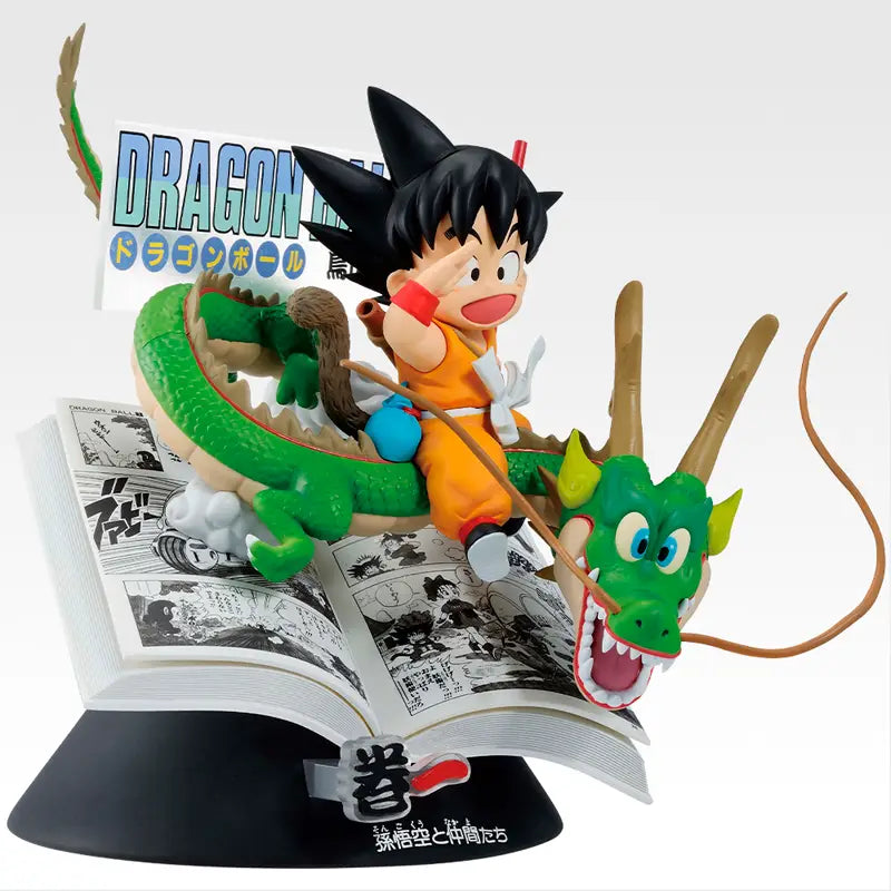 Figura Viñetas Comic de Goku Niño y Shenron (Vol. 1) (Premio A) de la Ichiban Kuji "Dragon Ball 40th Anniversary Part 1". Esta figura diorama especial captura la icónica portada del primer volumen del manga, con Goku Niño sobre Shenron, recreada con un impresionante efecto de viñeta. El premio principal de la colección.